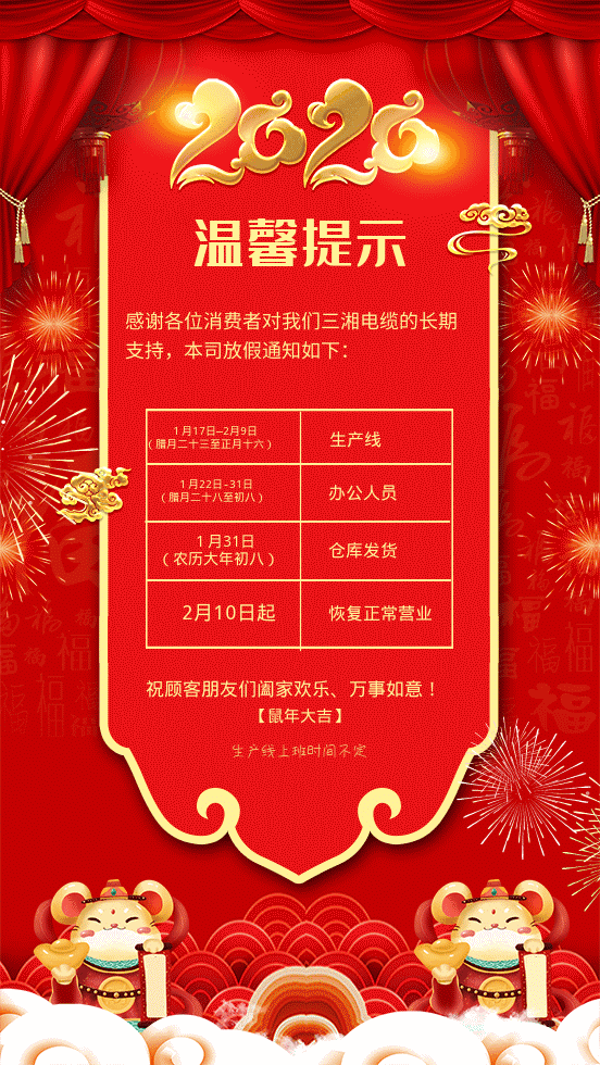感謝各位經銷商和消費者對我們產品的信賴和支持,本司本著以人為本的信念,春節期間未安排相關人員加班,請需要備貨的經銷商提前備貨!
